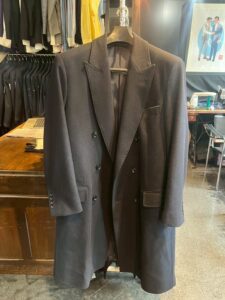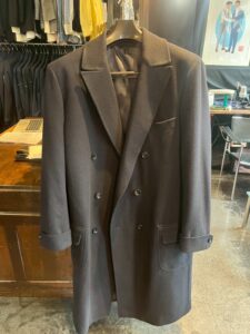 1つ目は「ダブルピークコート」下記に出てくる「アルスター」や「ポロコート」と比較するとやや現代的な印象を受けます。クラシカルではなくといったご用命に置かれましてのダブルコートのご検討にはもってこいであると感じております。個人的には細身に仕上げたいというご要望のお客様にはラペルのナローな雰囲気がマッチすると考えております。