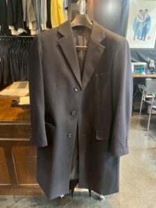 今回NEWコートの監修、リニューアルに至った経緯からご説明いたします。昨年までは基本サイズに対して着丈がクラシカルな膝上がほとんどで長さを出す為には基本サイズをアップせざるを得ませんでした。また昨年までのコートは芯が硬く、フォーマルな装いには適しておりましたが昨今のお客様需要は全てがそうではありません。あくまでも紳士服としてのアイデンティティを保ちながらもカジュアルスタイルに半歩寄せる、柔らかく身体馴染みの良い。そんなデザイン群を9つご用意いたしました。コートご注文の際にはそのデザイン群を直接ご覧いただき、サイズをお確かめいただきながら理想の生地で御仕立ていただけると本望でございます。